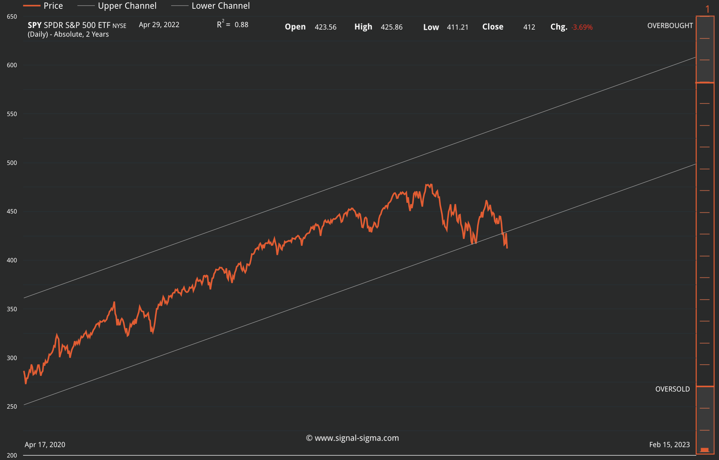 In the Signal Sigma framework, SPY is the instrument we monitor for general asset class allocation to equities. If SPY closes below its technical channel (Z-Score -1 or lower) after a prior uptrend, our system closes out equity exposure in all portfolios.