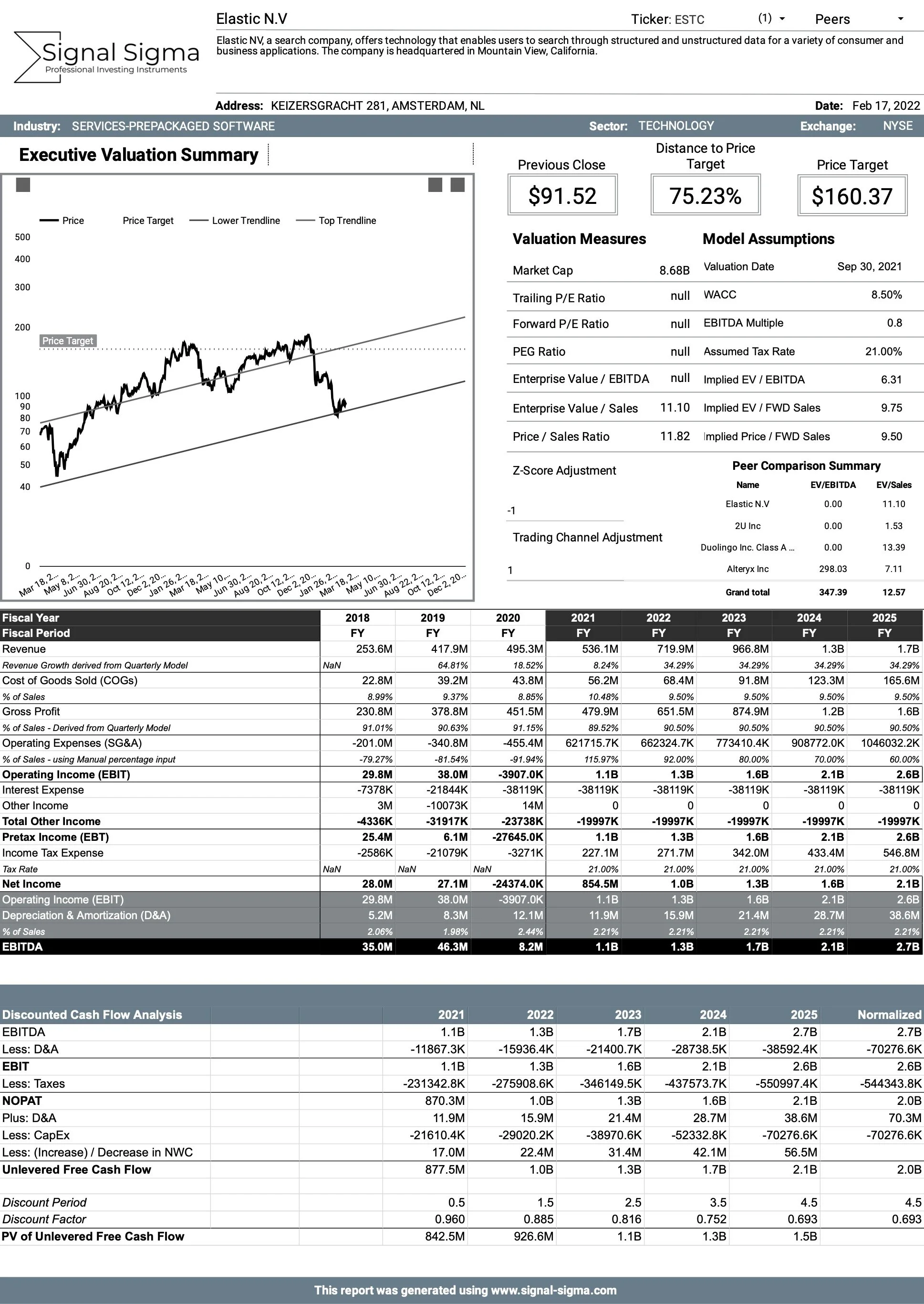 Signal Sigma allows you to export your fundamental and technical synopsis in an elegant PDF template that you can then download and share.