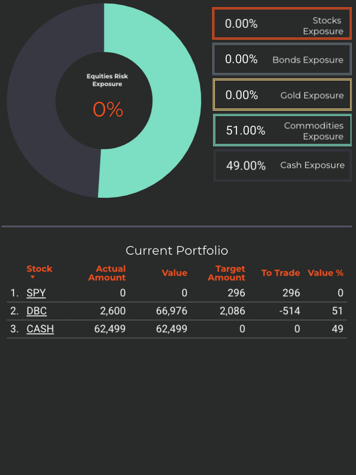 Equities will also be heavily purchased, if SPY will trigger a BUY Signal. Up to 90% of total portfolio value will go towards allocation to SPY. However, as discussed below, this possibility is unlikely.