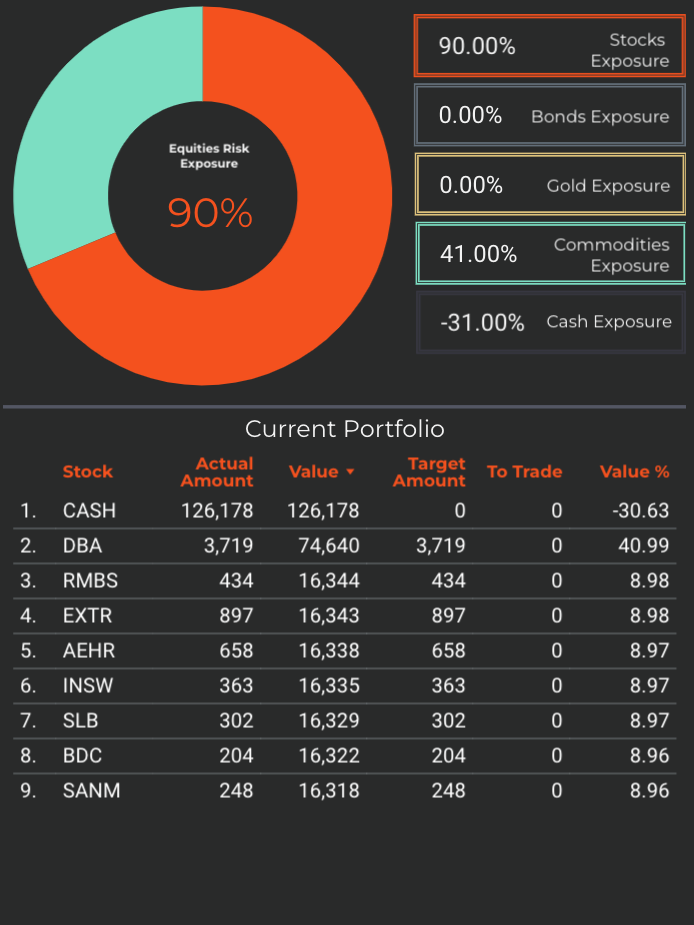 Enterprise, our most conservative model, holds 52% exposure to commodities, and 48% cash.