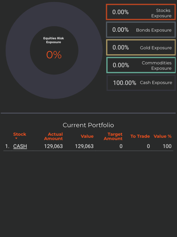 Nostromo, our tactical allocation model is starting the week with 100 % cash positioning.