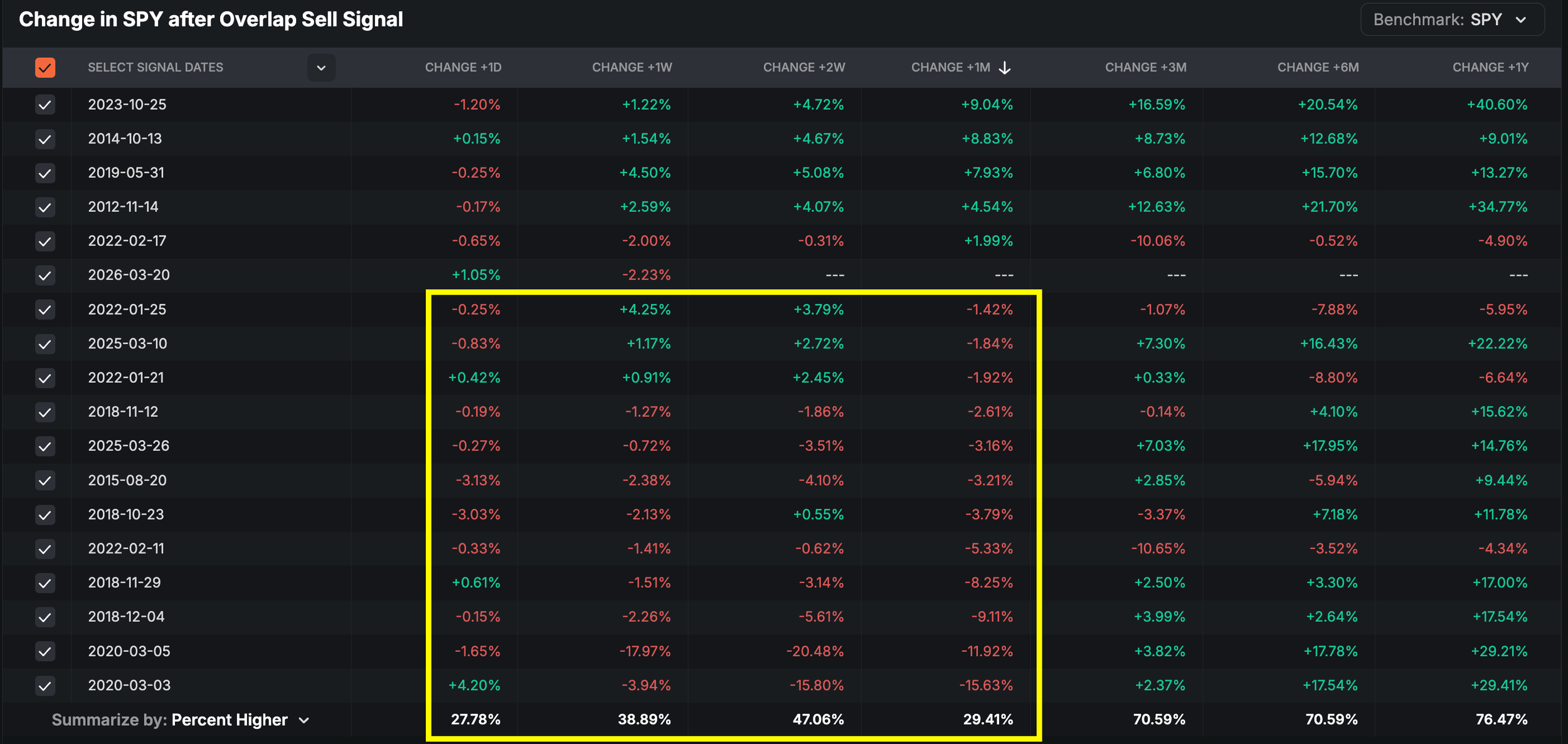 This is in fact the most bearish outcome we’ve ever backtested on this platform. The ultimate sell signal, triggered on March 20.