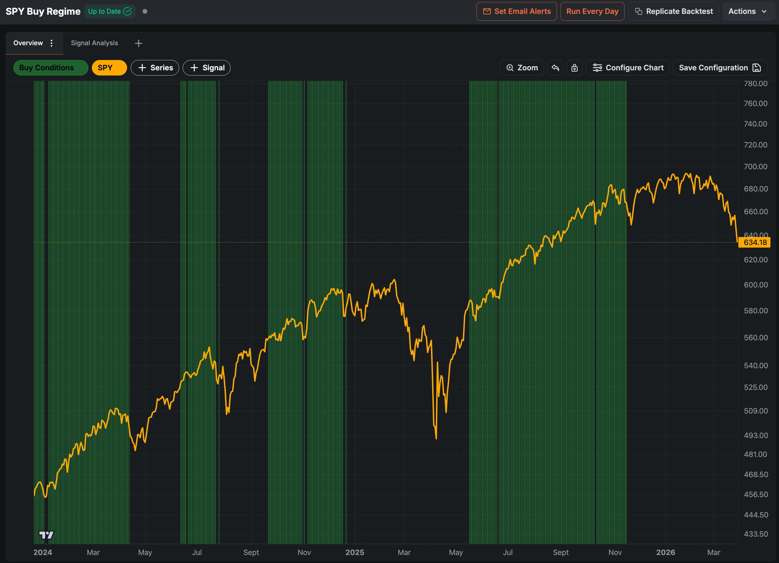 We would like to see this model commit at least 60% of its allocation to stocks before risking more in our portfolio.