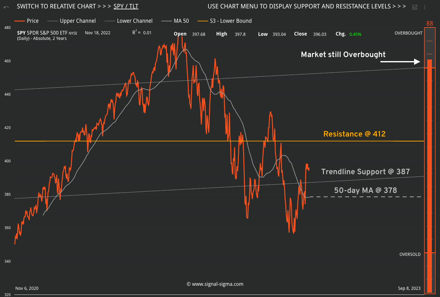 If, for whatever reason we get a rally to the 410-412 area, we will use the opportunity to reduce exposure further, in the Sigma Portfolio. Essentially, this juncture is the perfect place to employ a wait-and-see approach, and let the markets tell us what to do next.