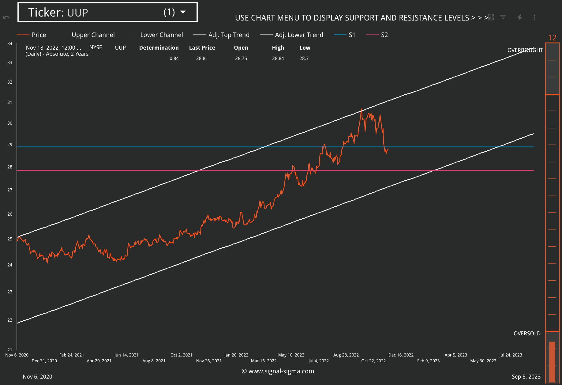 With the SPY still in Overbought territory, the trading range has now widened as follows: