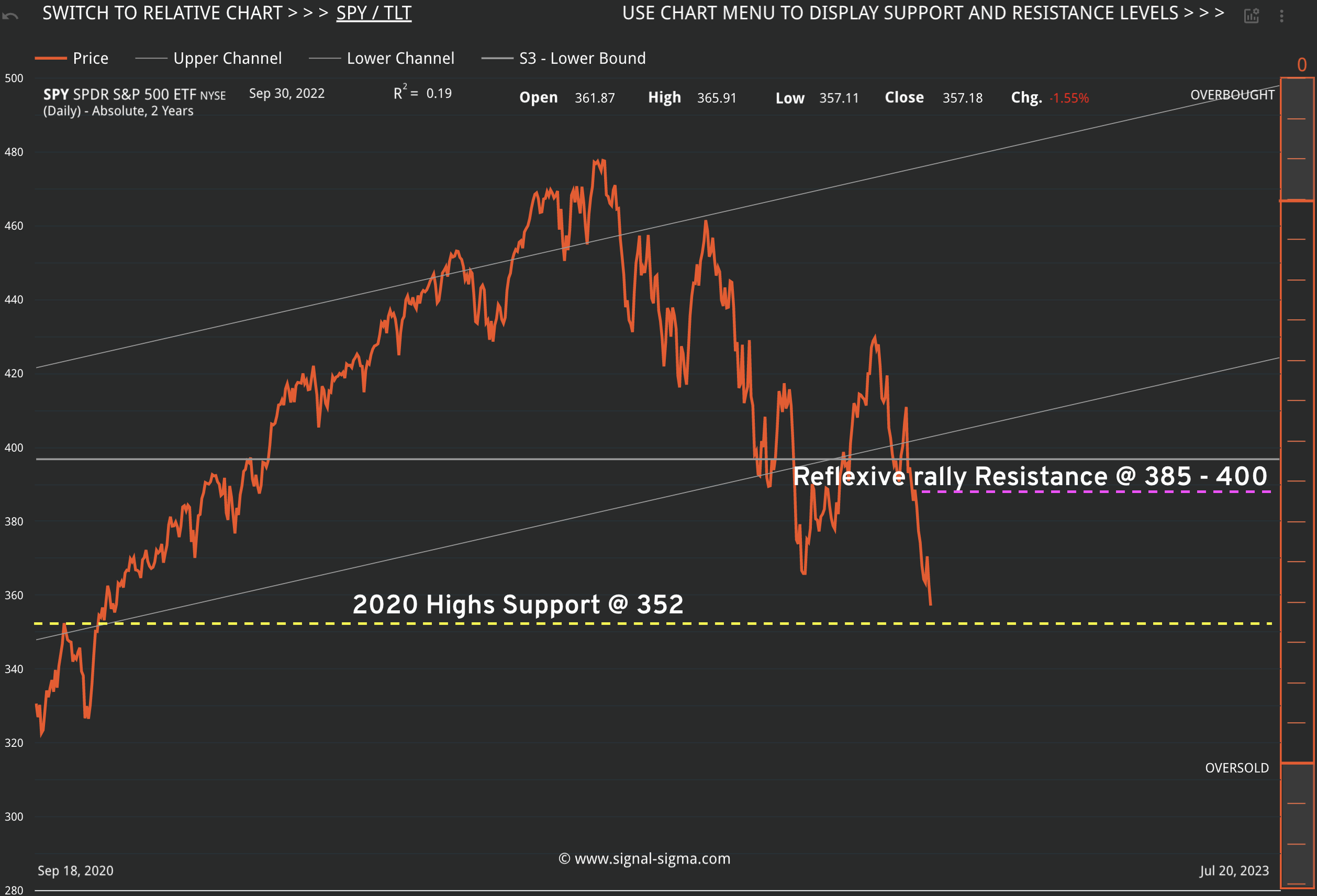 When we reach a more equitable technical set-up (385 on SPY) we will rebalance risk to market-neutral in the Sigma Portfolio, aiming to have our long positions fully covered by hedges. If a short-covering rally goes all the way up to 400, then we would be inclined to start tipping our portfolio to the net-short side, as we are getting all the technical and fundamental signals that we are in a bear-market.