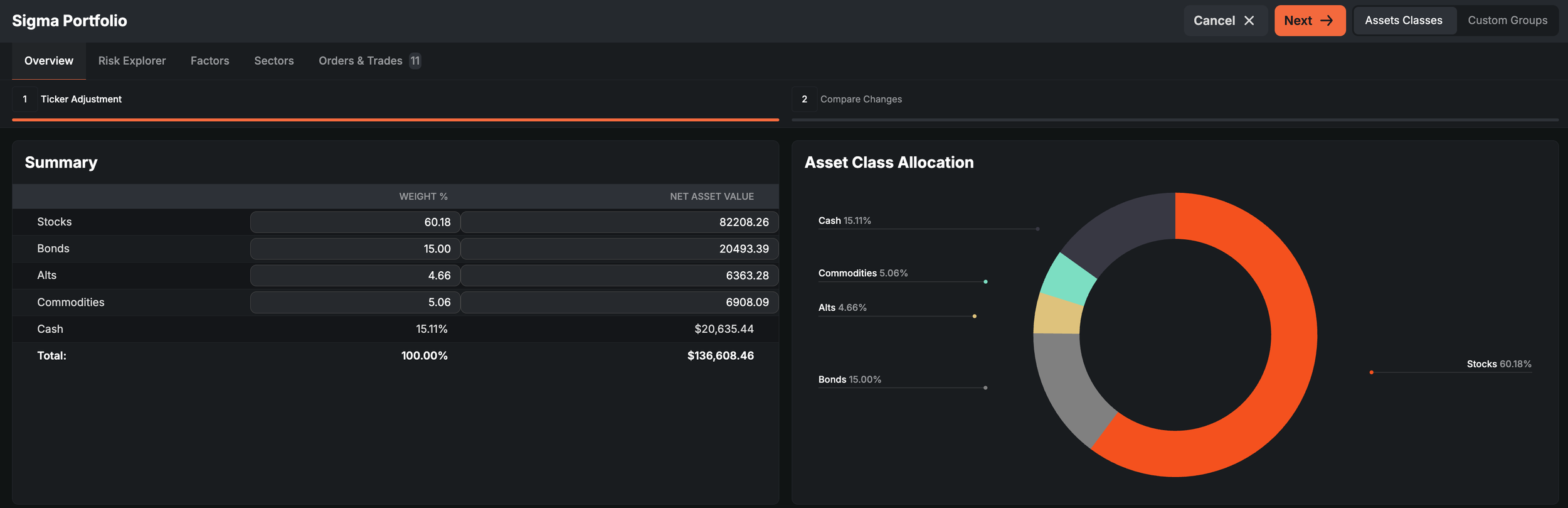 Equities: 64% -> 60%